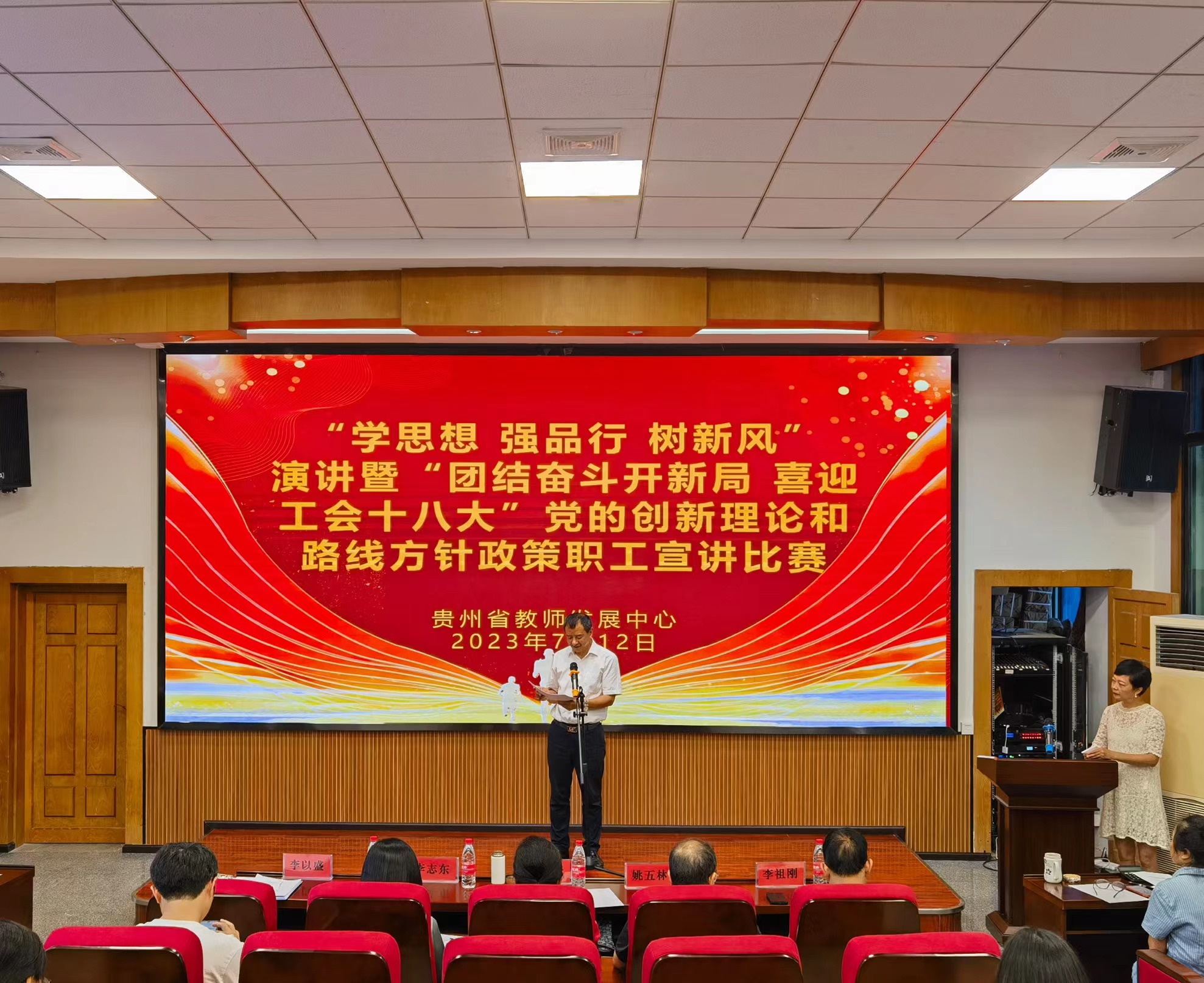 为深入开展学习贯彻习近平新时代中国特色社会主义思想主题教育,掀起学习宣传贯彻落实党的二十大精神热潮,引领干部职工加强师德师风建设,增强爱岗敬业的精神和担当作为的勇气,7月12日,省教师发展中心举办“学思想 强品行 树新风”演讲暨“团结奋斗开新局 喜迎工会十八大”党的创新理论和路线方针政策职工宣讲比赛。