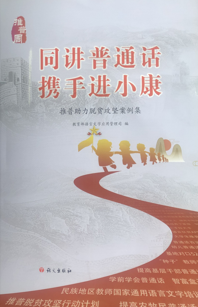 日前,为深入贯彻习近平总书记在决战决胜脱贫攻坚座谈会上的重要讲话精神,落实中央关于脱贫攻坚的重大决策部署,建立健全推普助力脱贫攻坚长效机制,教育部语言文字应用管理司开展了推普助力脱贫攻坚优秀典型案例征集工作。结合推普助力脱贫攻坚的总体部署,通过组织专家评审,最终选取全国43个优秀典型案例编入《同讲普通话 携手进小康——推普助力脱贫攻坚案例集》。
