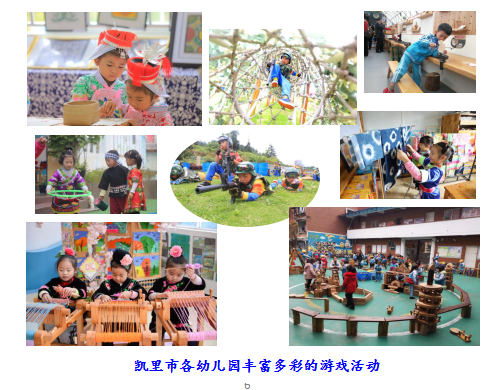 2016年来,凯里市借助国家、省实施“学前教育质量提升项目”平台,“以教研为抓手,再读《指南》,开展游戏”,并把“探索游戏”作为去“小学化”、深入贯彻落实《规程》《纲要》《指南》的主要措施和重要工作。
