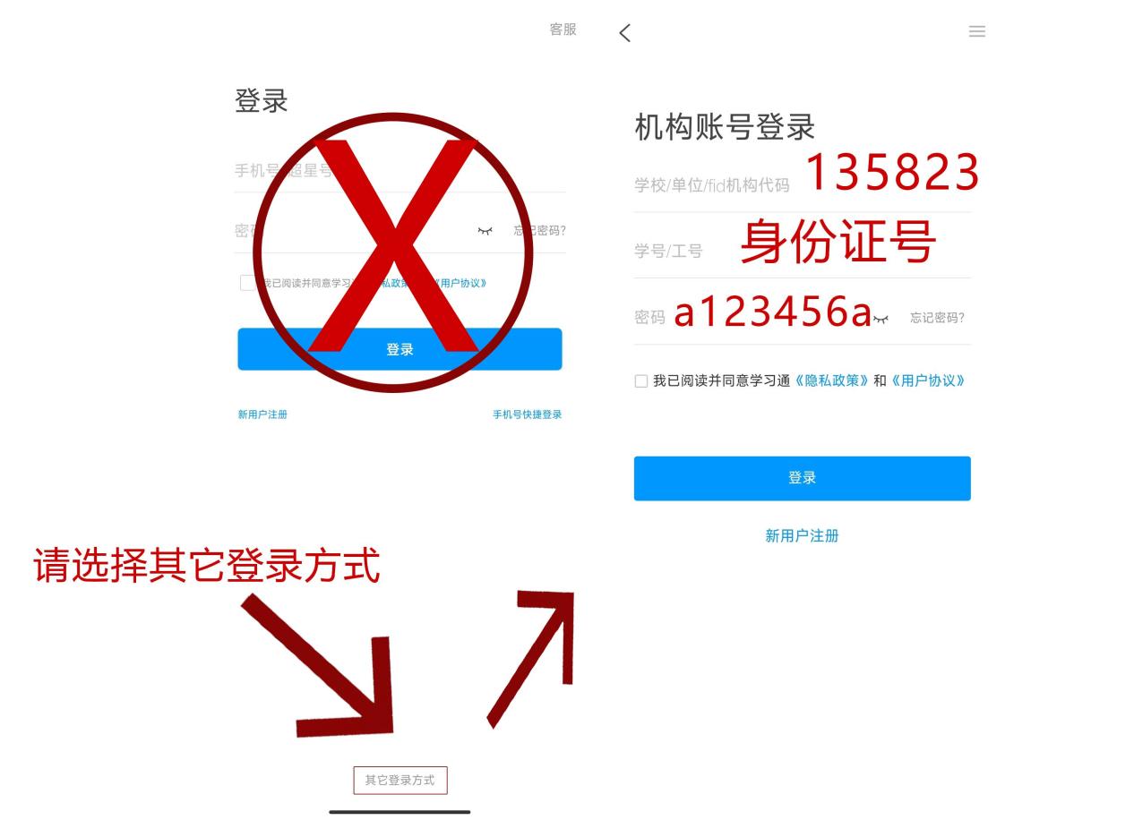 (一)考生必须提前下载超星学习通APP,登录方式选择:其他登录方式