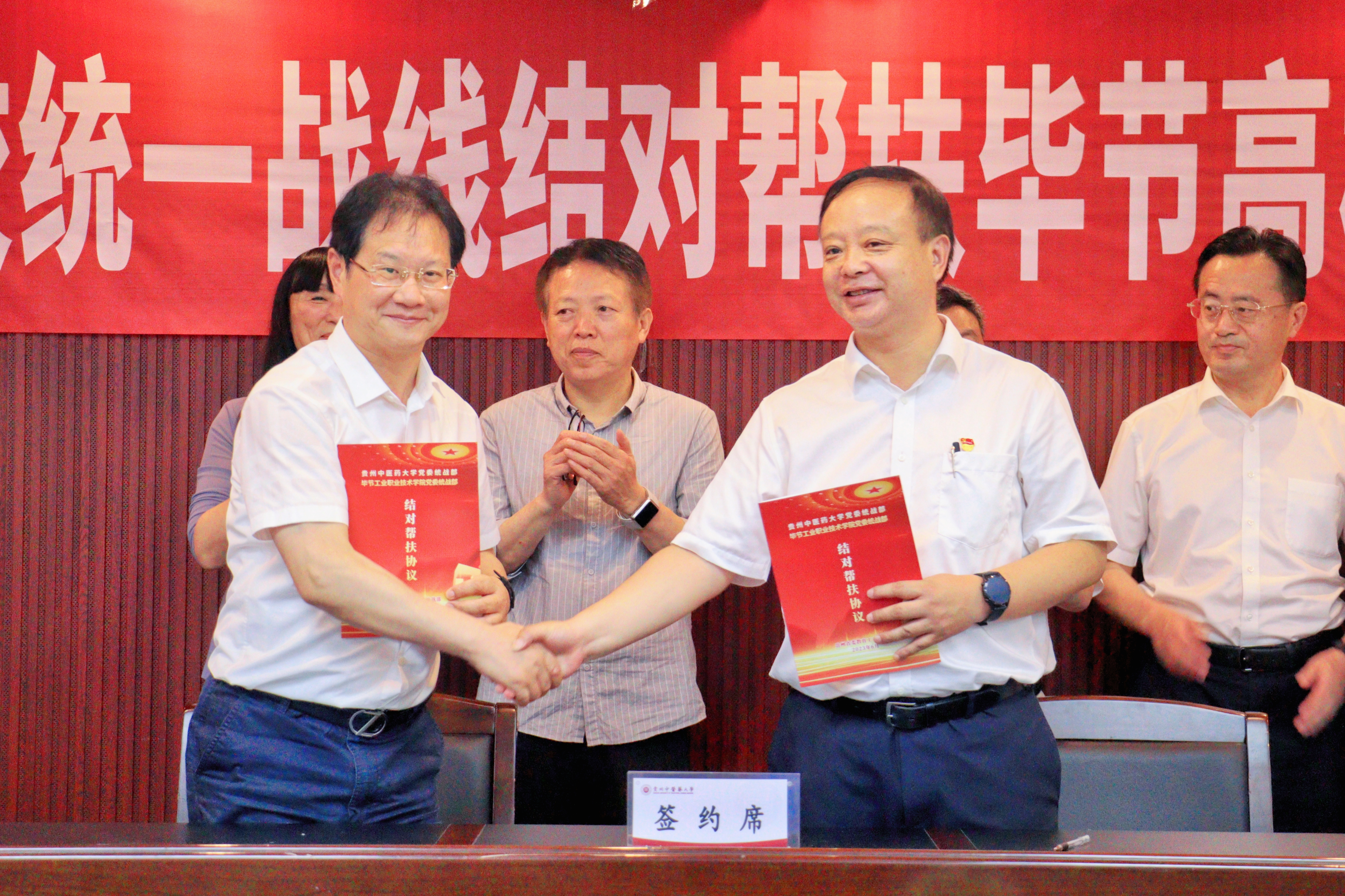 6月30日,在省委教育工委的统筹指导和精心组织下,省属高校统一战线结对帮扶毕节高校签约仪式在花溪大学城贵州中医药大学举行。相关省属高校、毕节高校分管统战工作负责同志出席签约仪式。贵州中医药大学统战部、贵州工程应用技术学院分别围绕结对帮扶相关工作发言。省委教育工委相关处室负责同志主持签约仪式。